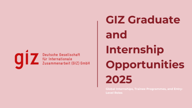 GIZ Graduate and Internship Opportunities 2025 – Global Internships, Trainee Programmes, and Entry-Level Roles. GIZ offers diverse graduate and internship opportunities in 2025 through its global trainee programmes, internships, and entry-level employment. Whether in Germany or abroad, students and graduates can gain meaningful work experience in international development and cooperation with GIZ. GIZ graduate programme 2025, GIZ student opportunities